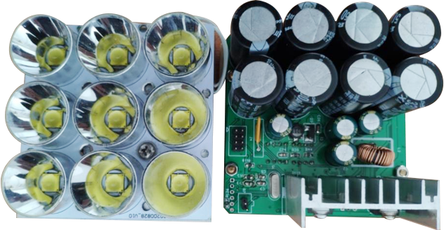 本产品采用分体式超高亮度LED, 每颗LED芯片配有反光杯,可应用于较远距离(5米以上)高速运动物体的补光抓拍。产品具有体积小,亮度高、方便集成的特点。